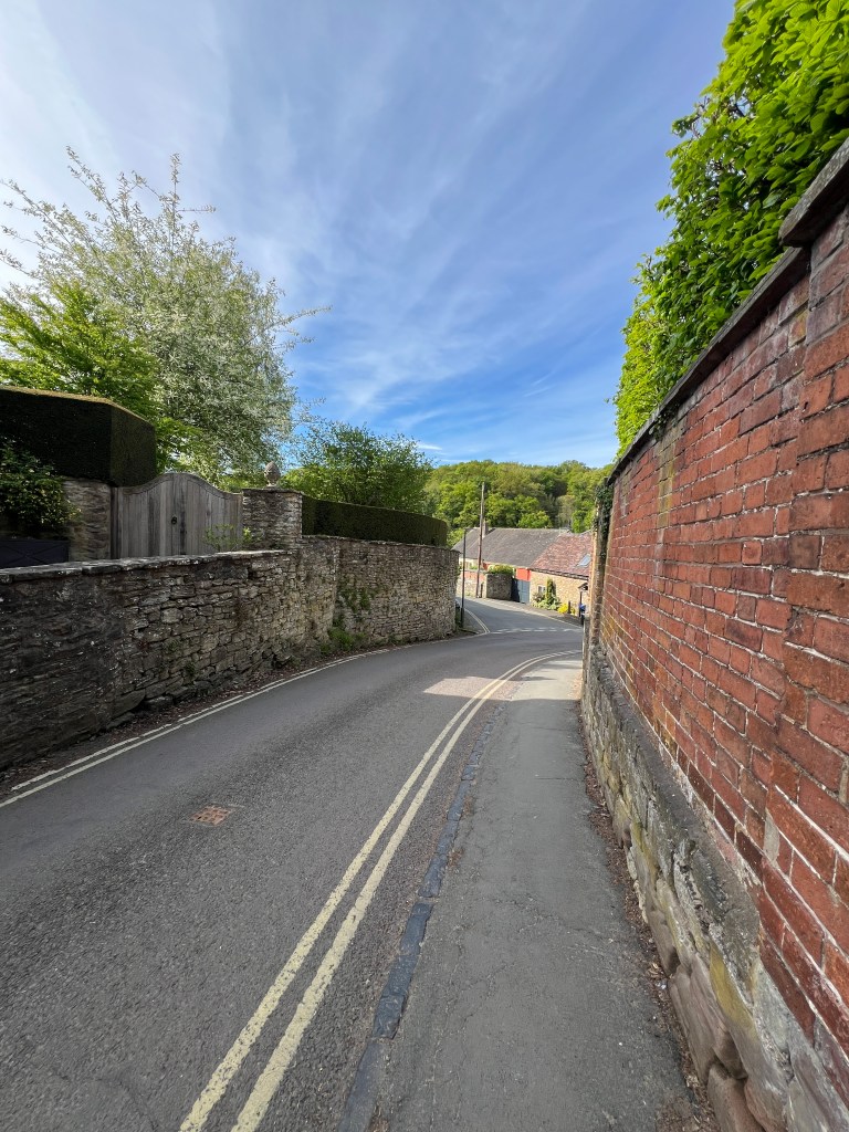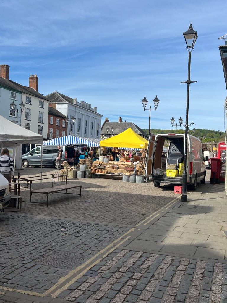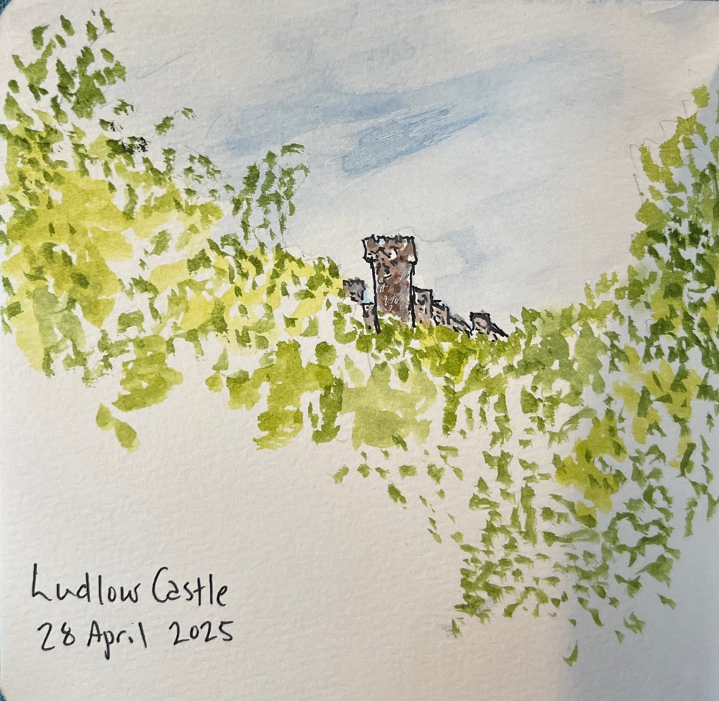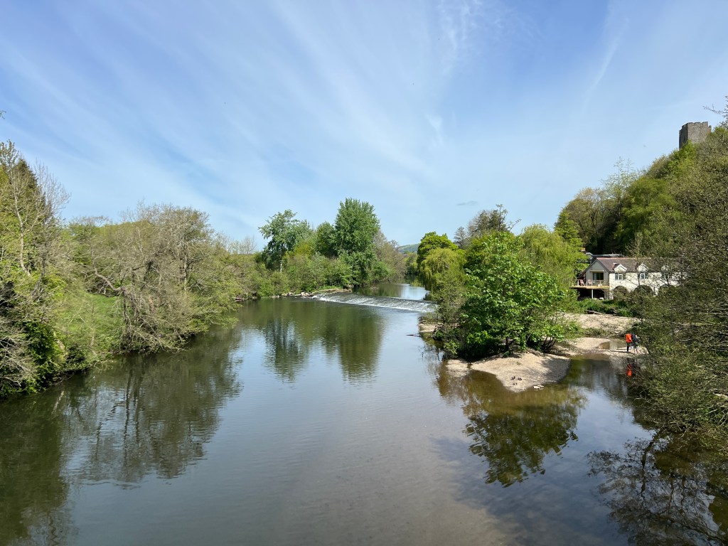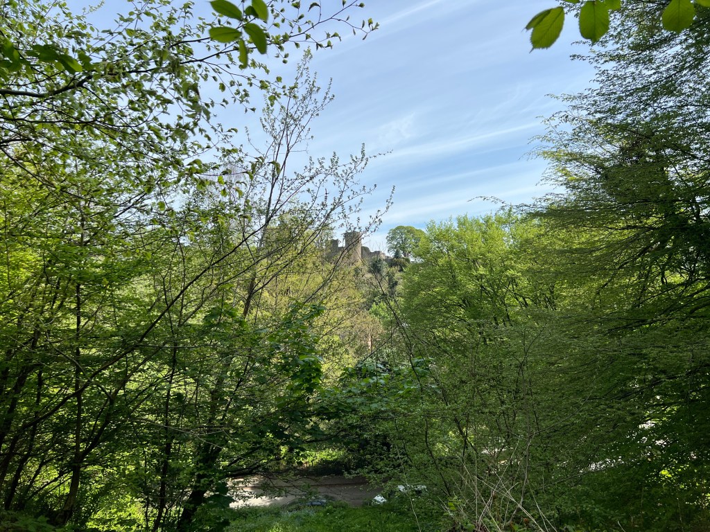 Despite not having to, I awoke at 6 AM! Lollygagged until laundry service opened, but alas: they would not have my clothing done in time. Oh well! Strolled through town (OMG cutest ittle town) past the castle, and down to the river (the Severn, I believe) for brunch at a riverside cafe. Hung out for some time, contemplating walking up the hill on the other side of the river. Then tackled it.
