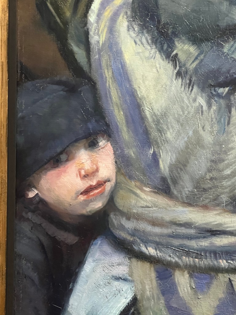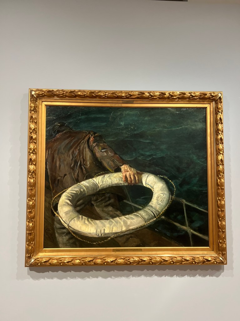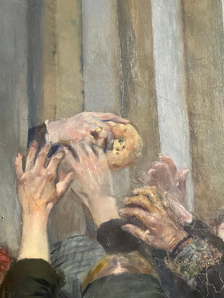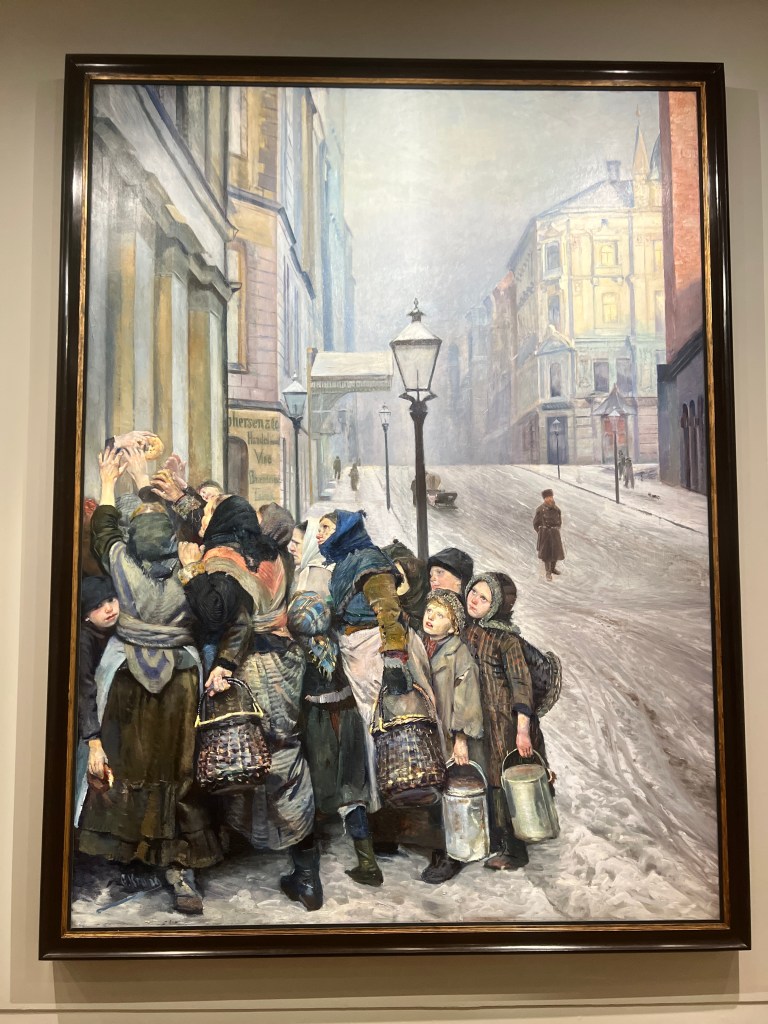 The special exhibition at the museum was a Norwegian painter, Christian Krohg. The next four photos details and full painting of his “Struggle for Survival.” Krohg was well-known for his heightened sense of social justice for the poor and struggling, prostitutes, and laborers. I was thrilled to be introduced to this extraordinary artist!