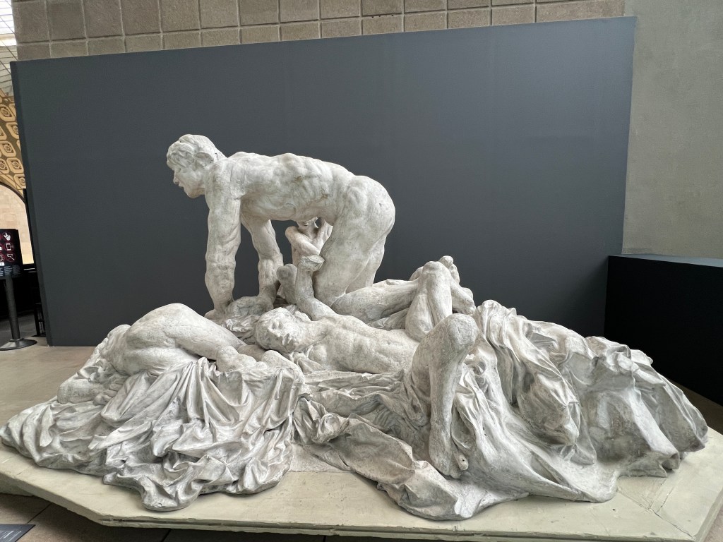 And speaking of Danté, the following two plaster sculptures (bronze versions at Musee Rodin) are from The Inferno. The sculpture portrays Count Ugolino della Gherardesca, a traitor who was imprisoned and starved to death with his sons. The work captures the moment of his extreme suffering and desperation as he crawls over the bodies of his dying children. More here.