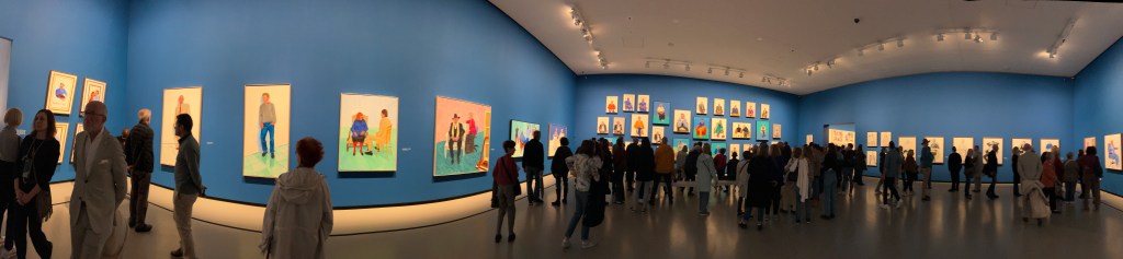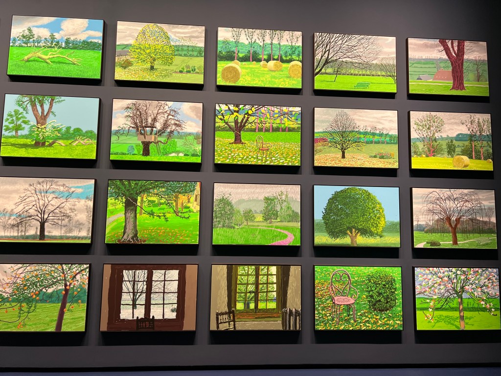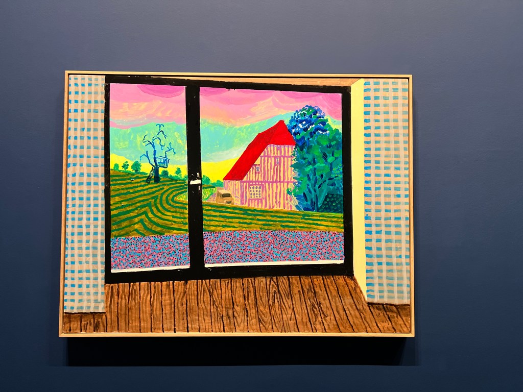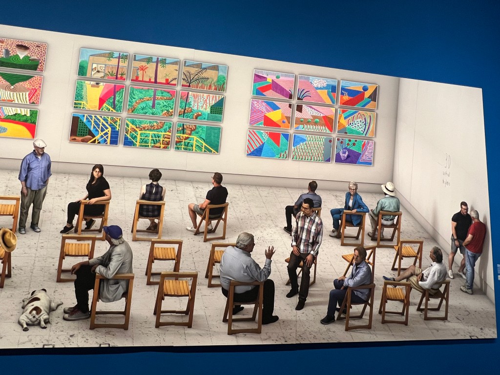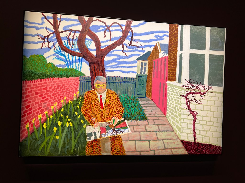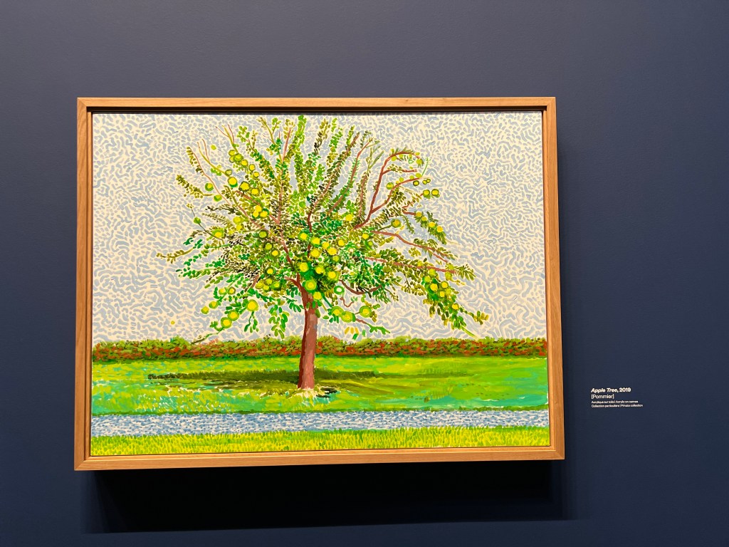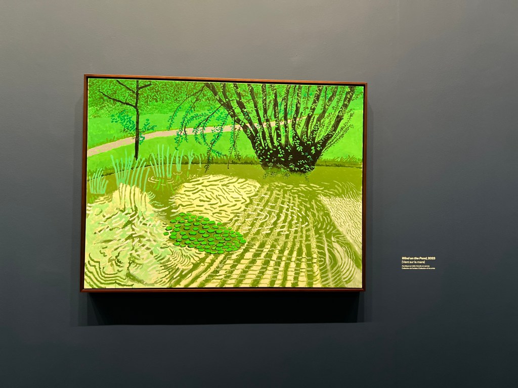 The Louis Vuitton Centre feels like it’s on a different planet from Paris. Has a distinctively suburban or exurban feeling, because of the extensive grounds. I was, I will admit, feeling a little neutral about going to this show, but it was recommended by my friends John and Louise, and it seemed right to go. Hockney has never been one of my favorite artists, but this show spun me round and blew my mind. Just wonderful!