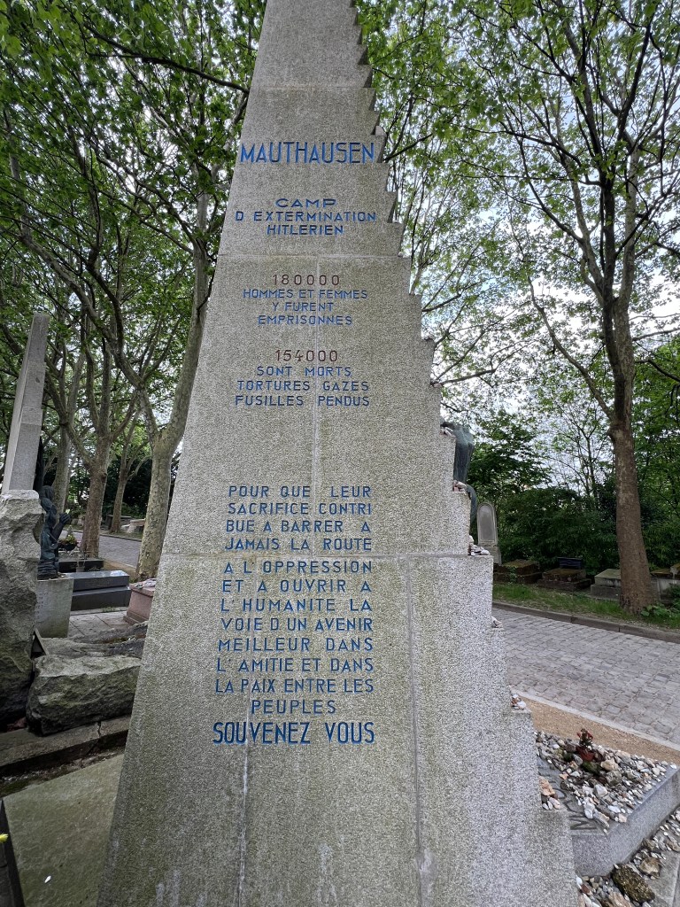 From Art to Death, next stop was Pere Lachaise. Mandatory pilgrimage to literary and music heroes and heroines. What I wasn’t expecting were the numerous moving and beautiful and also horrific memorials to the Nazi death camps, and other holocaust and WWII remembrances. Also, just a LOT of gorgeous monuments and crypts.