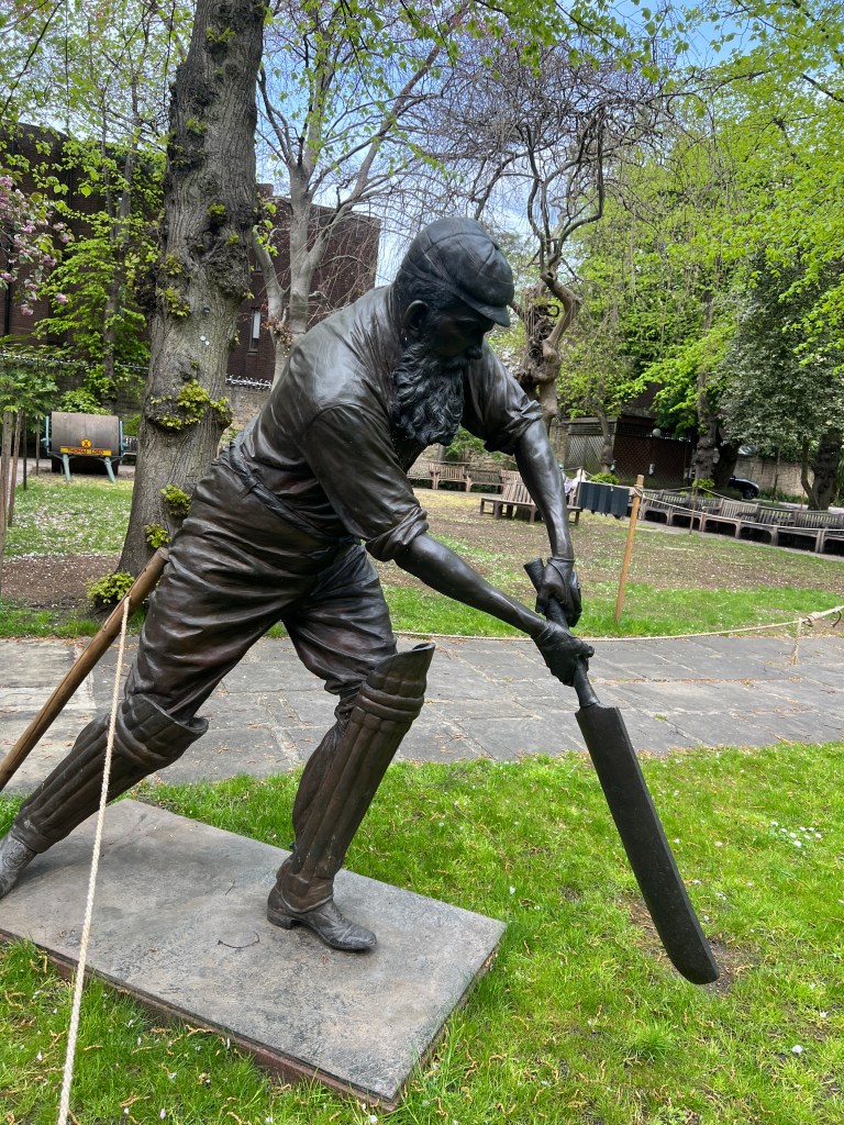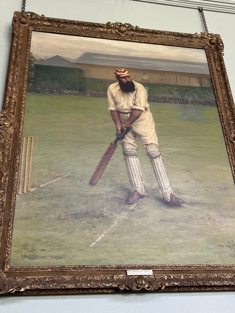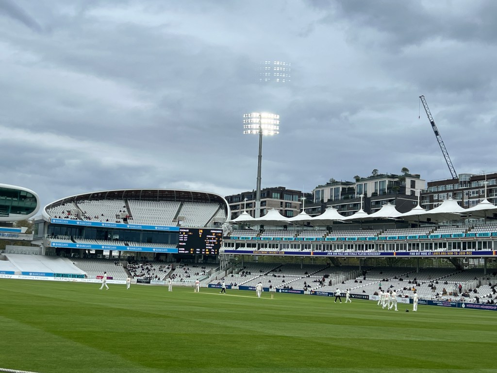The Lords is a storied cricket ground, with very strict rules of attendance. Met have to wear jackets and ties/cravats. Women have to wear nice clothing (not dresses per se, but “smart casual”) and athletic shoes are discouraged but okay. I wore my little Taos ballet slippers and a jumper (no, not a sweater). I was able to walk from my digs through St. Johns Wood to the grounds.