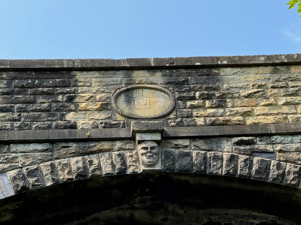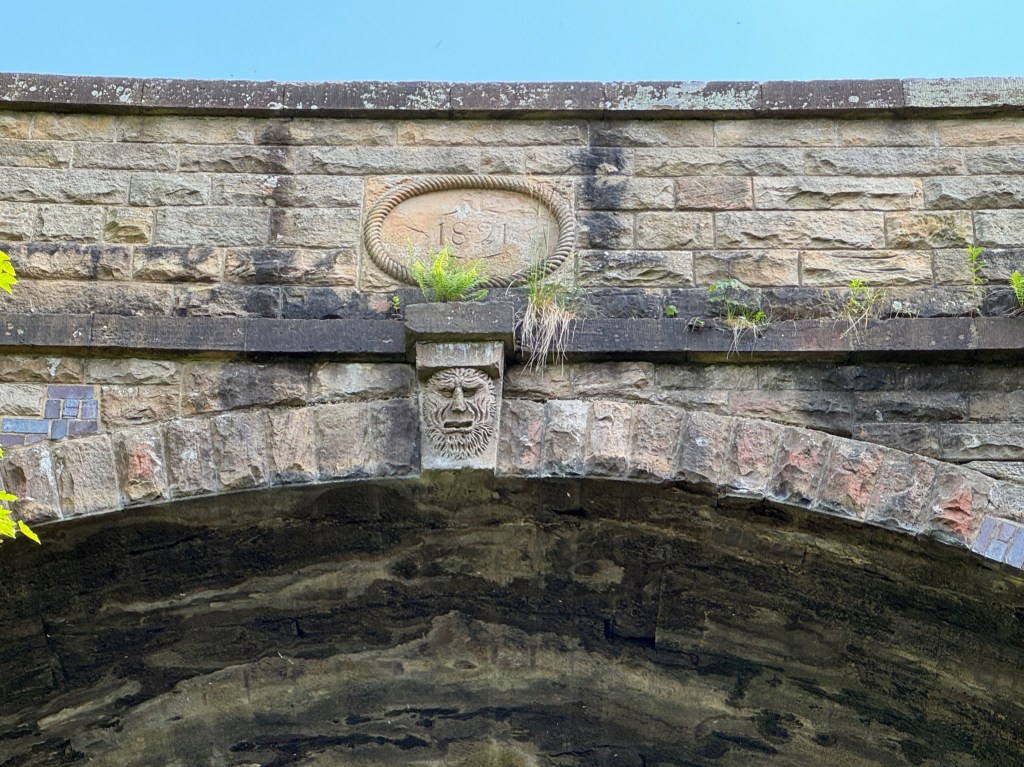 The Laughin and Greetin bridge! (“Greeting” is a Scots word for crying.) The two faces of this bridge look in opposite directions: the Laughing face towards the simpler construction work east and the Greeting face towards the more difficult construction work of a tunnel and flights of locks to the west.